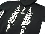 マハースカ オリジナル 梵字 スウェット ジップアップ パーカー 憤怒明王 ![]() 価格: 円 レビュー評価: レビュー数: 仏教の敵や迷いを憤怒の形相で威喝する ご存じ「明王」。 その中でも人気/実力/信仰数で 他を圧倒する二大明王の 愛染明王と不動明王を朴筆合字梵字で 「フーン」と「カンマン」と呼ばれる 日本密教独自の創作書体です。 右袖には愛染明王を左袖には不動明王を讃える真言を、憤怒尊の共通種子字である 「hu:m~/フーン」内に納める。「フーン」とは、怒りをもって仏敵を撃ち破る 威喝の声である。 生地は10.3オンスの裏起毛スウェットです。 素材:ポリエステル65%、綿35%(裏起毛) フードは二枚仕立てです。 色 |